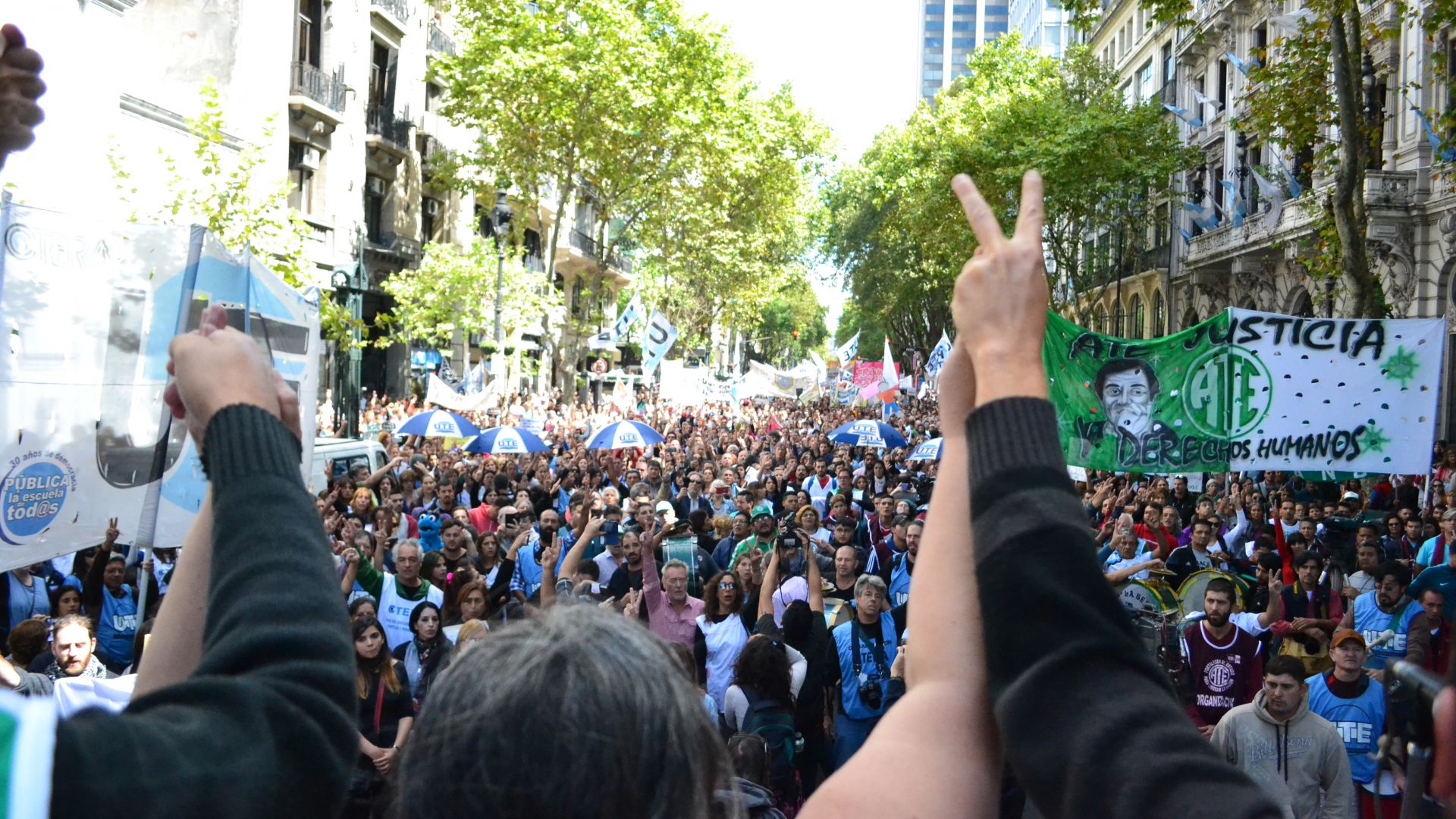 Por su parte, Guillermo Parodi, secretario general adjunto de UTE, declaró que “es un profundo orgullo para todos los docentes poder estar haciendo el paro, compartiendo la calle y la lucha con los compañeros de ATE”. En ese sentido, afirmó que “no nos vamos a entregar con ningún funcionario que quiera doblegar la voluntad docente, funcionarios que hicieron alarde en la campaña nacional del respeto y del diálogo, hoy no quieren dialogar y se niegan a cumplir la ley, por eso vamos a seguir en la calle exigiendo la inmediata convocatoria a la paritaria nacional”.