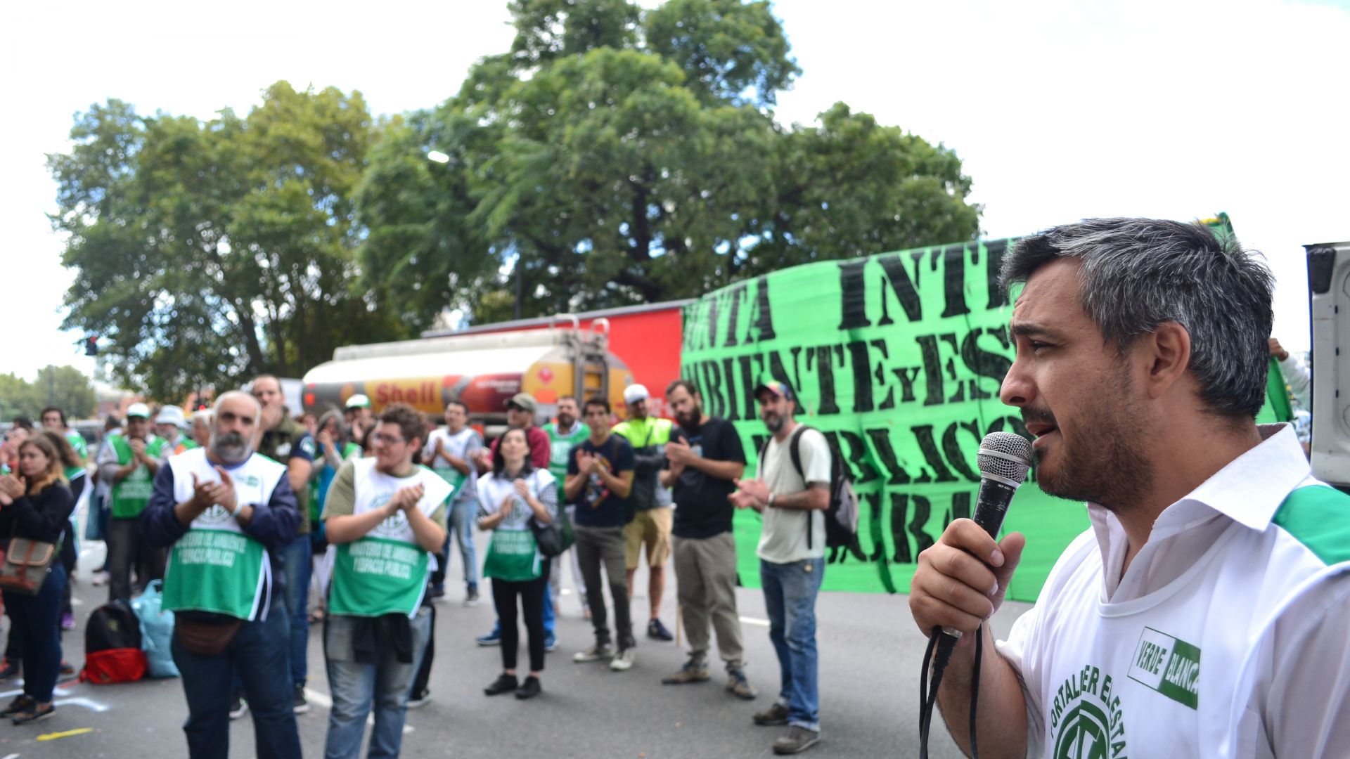 “Están persiguiendo a los trabajadores y trabajadoras con un claro sentido de persecución contra ATE, se están vulnerando derechos en el Organismo y no lo vamos a permitir. Hoy vamos a dar una demostración de que si los funcionarios no oyen, el conflicto se profundiza”, señaló, Santiago Galeano, delegado adjunto de ATE en el MAyEP.