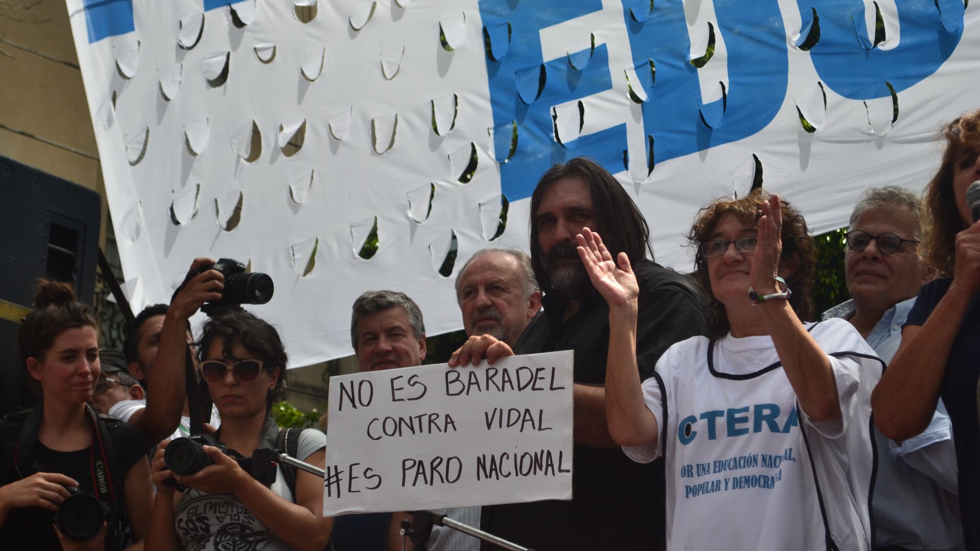 La masiva movilización sirvió además para expresar la profunda solidaridad de todos los maestros y maestras con Roberto Baradel, quien recibió múltiples amenazas dirigidas a él y a su familia así como distintos ataques de los medios hegemónicos.