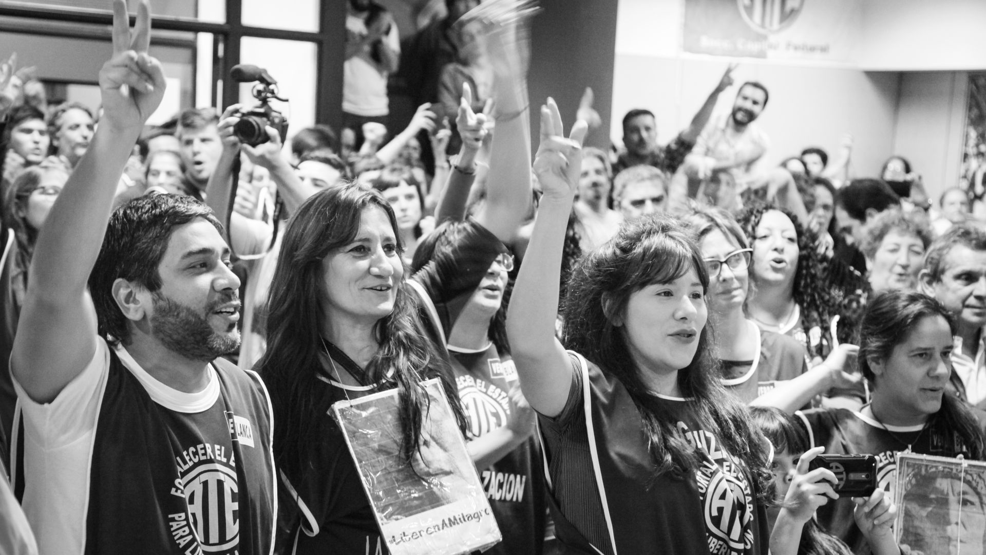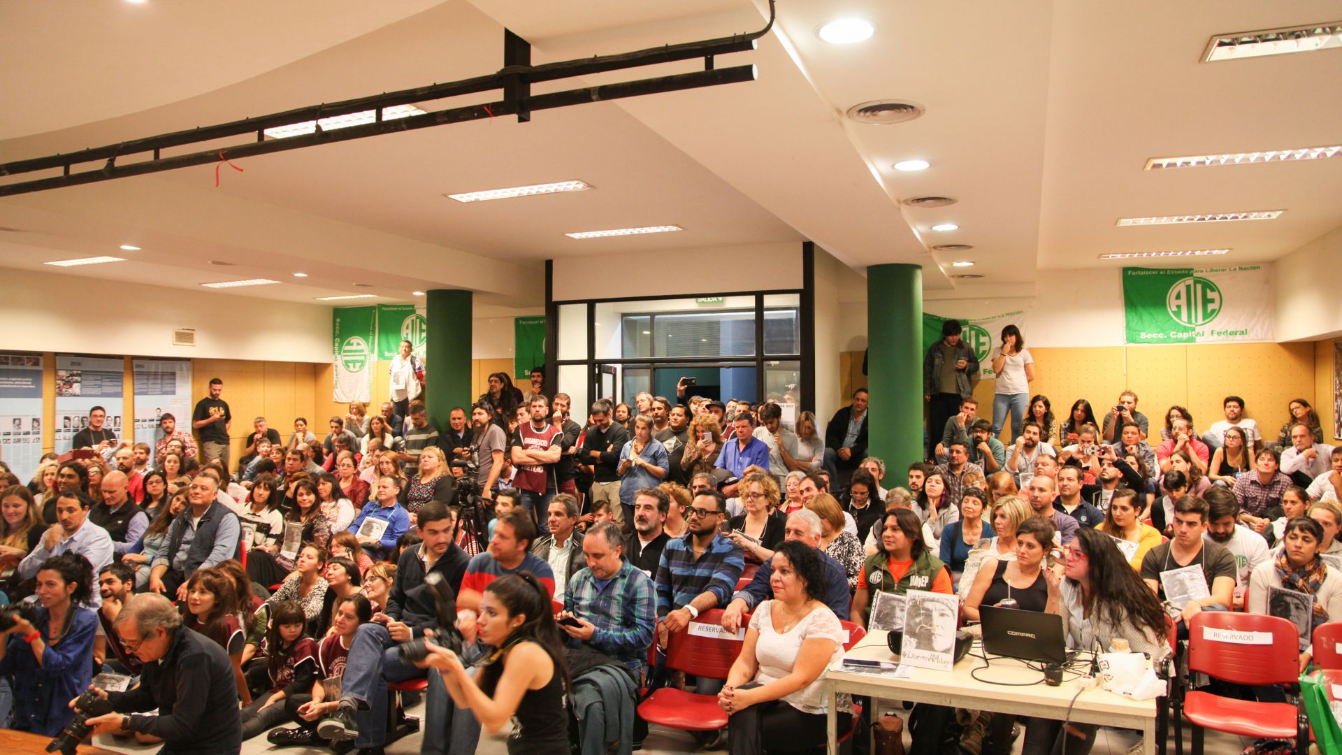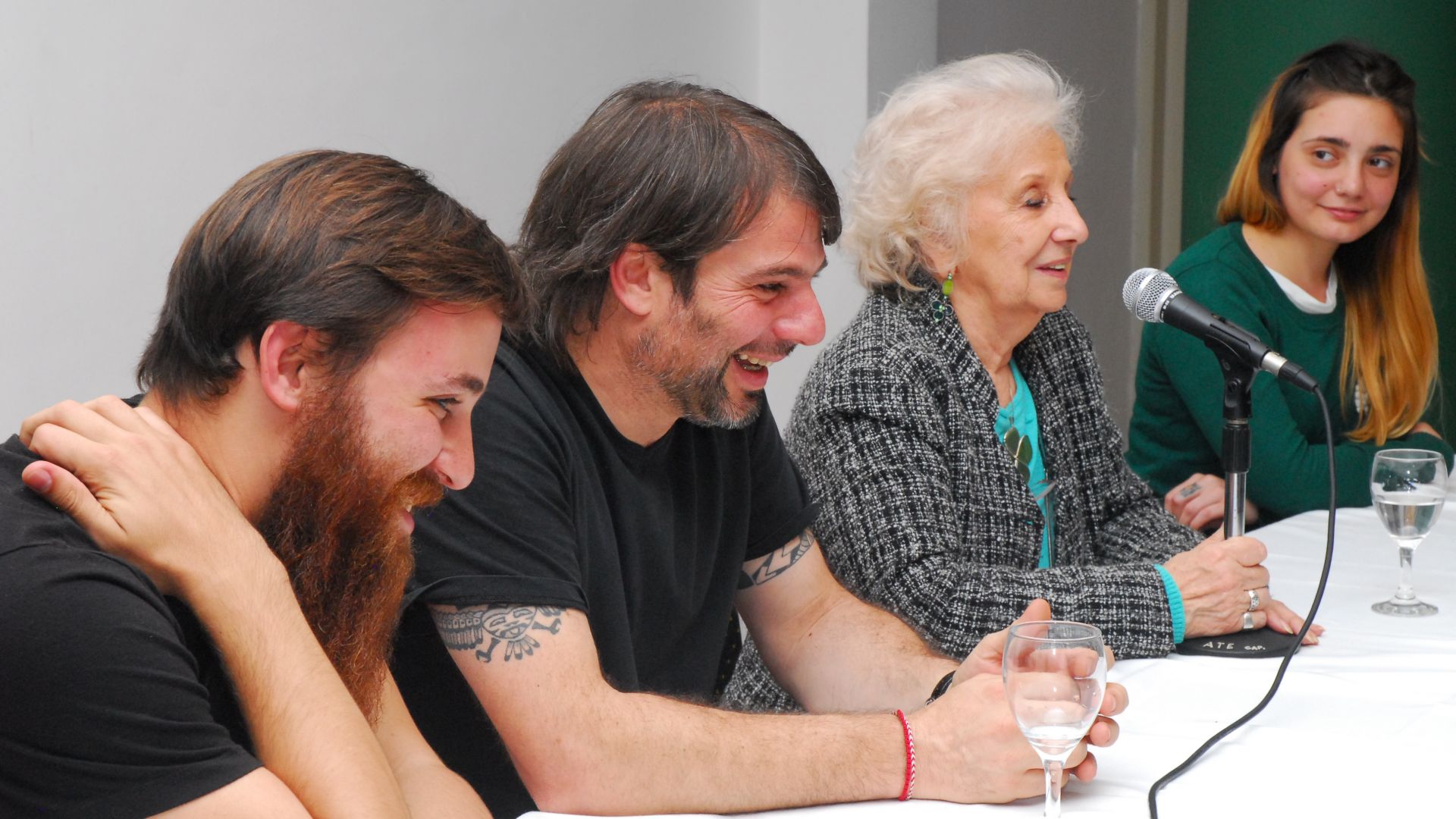 La Presidenta de Abuelas de Plaza de Mayo fue recibida entre aplausos y muestras de cariño de parte de los y las delegados, trabajadores y afiliados que se hicieron presentes en ATE Capital para ser parte del histórico encuentro. Daniel Catalano, Secretario General del sindicato; Iván Wrobel, Responsable del Área de Derechos Humanos; y Micaela Ferenaz, delegada general de Casa de la Moneda, acompañaron a Carlotto en el auditorio principal.