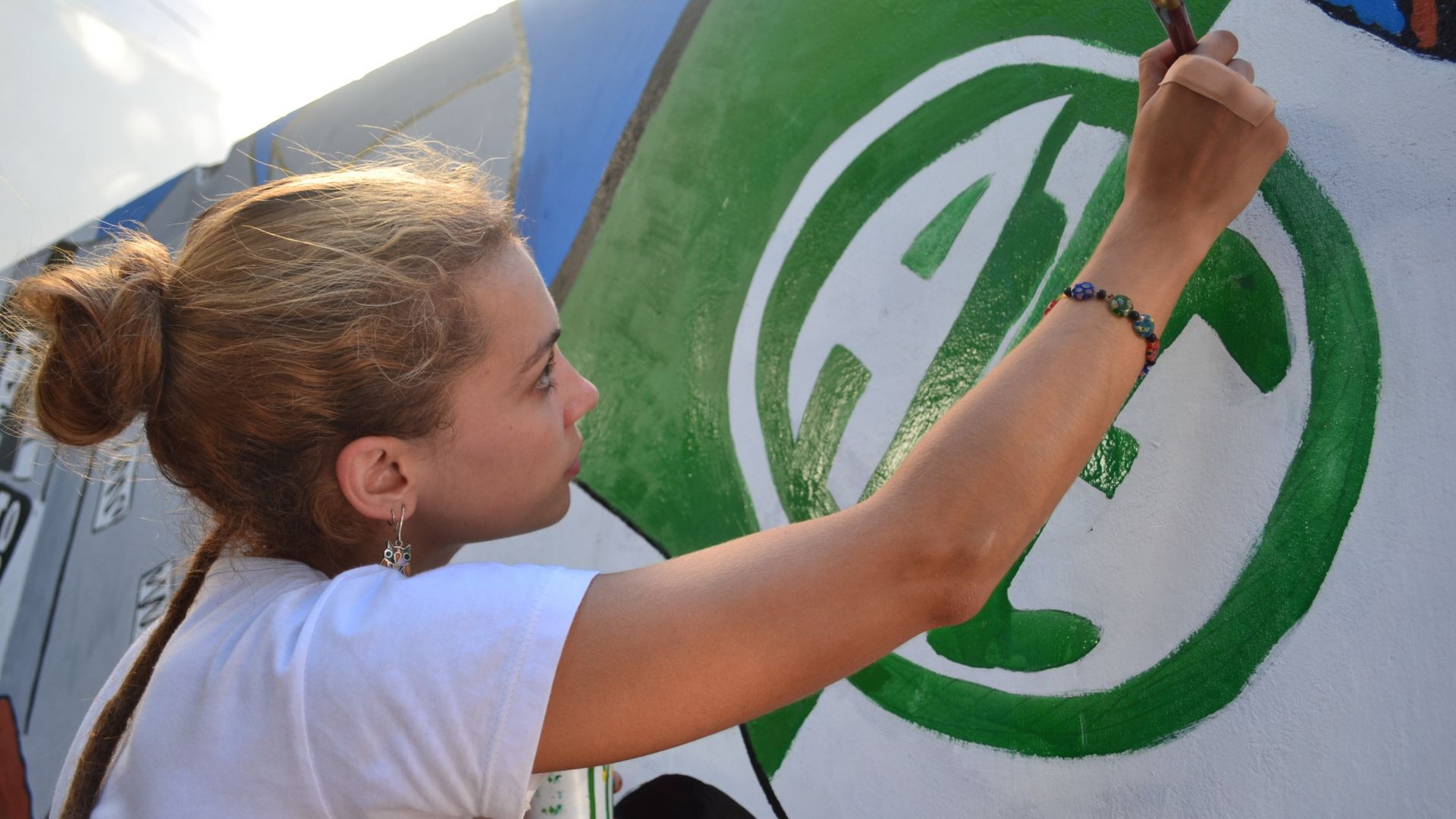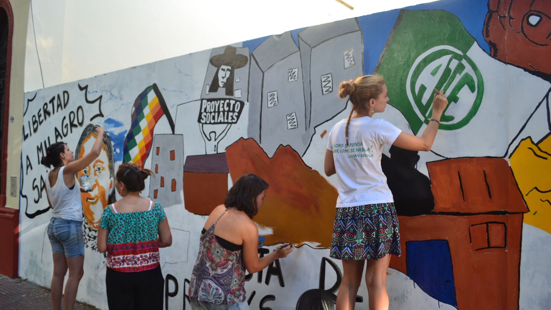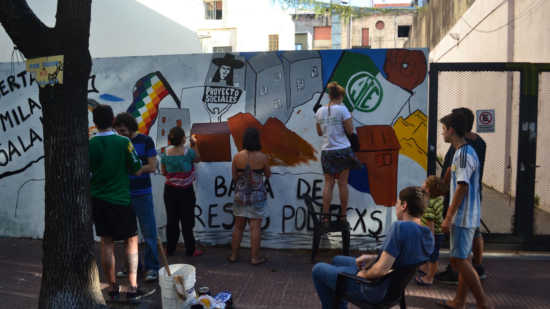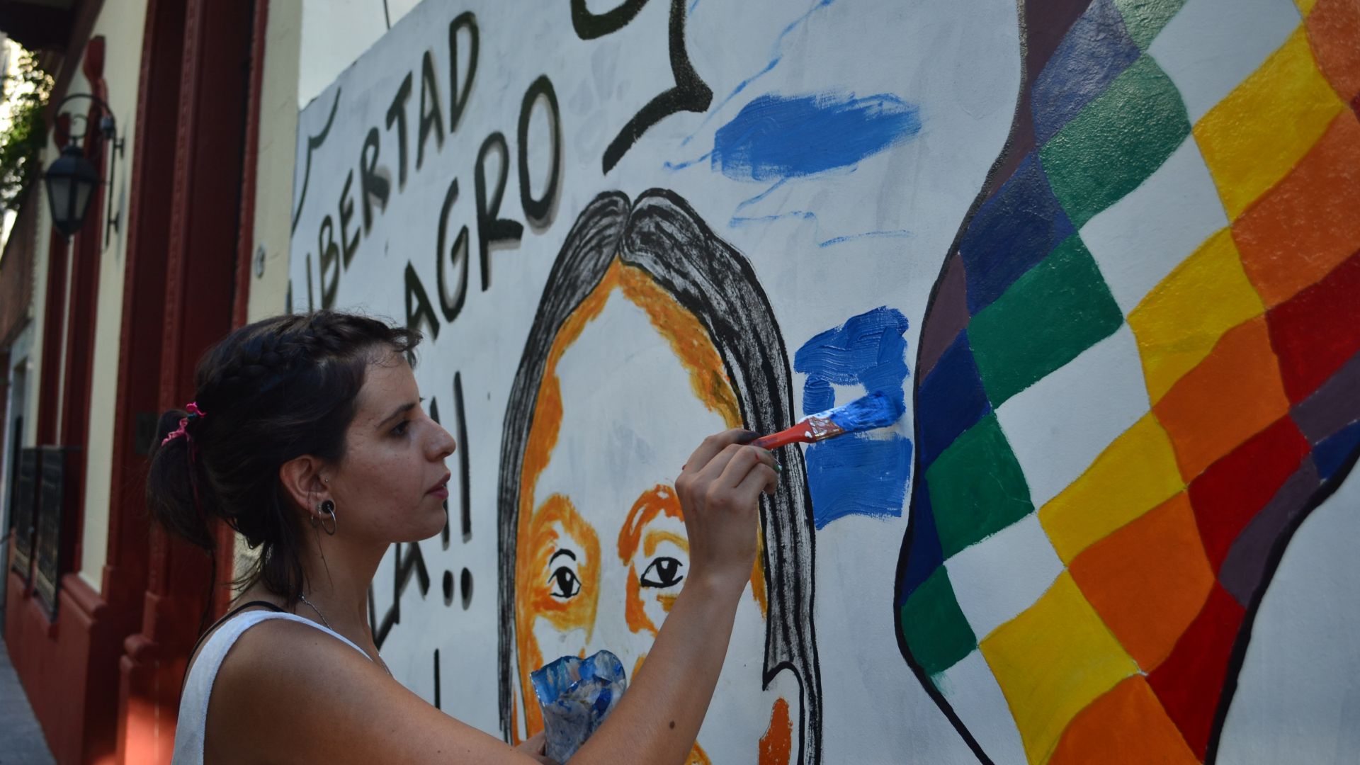 El mural fue realizado por la Juventud de ATE Capital en conjunto con Proyecto Sociales, agrupación estudiantil que conduce el Centro de Estudiantes de la Facultad, y en articulación con las áreas de Géneros y Derechos Humanos de ATE Capital.